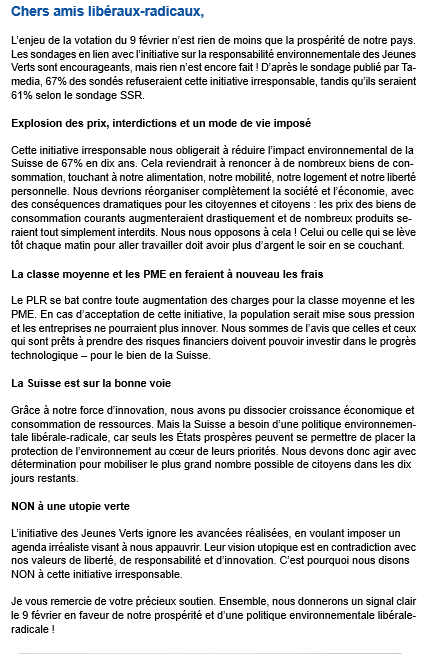 Merci pour votre engagement et votre engagement à la bonne cause que défend le PLR/FDP