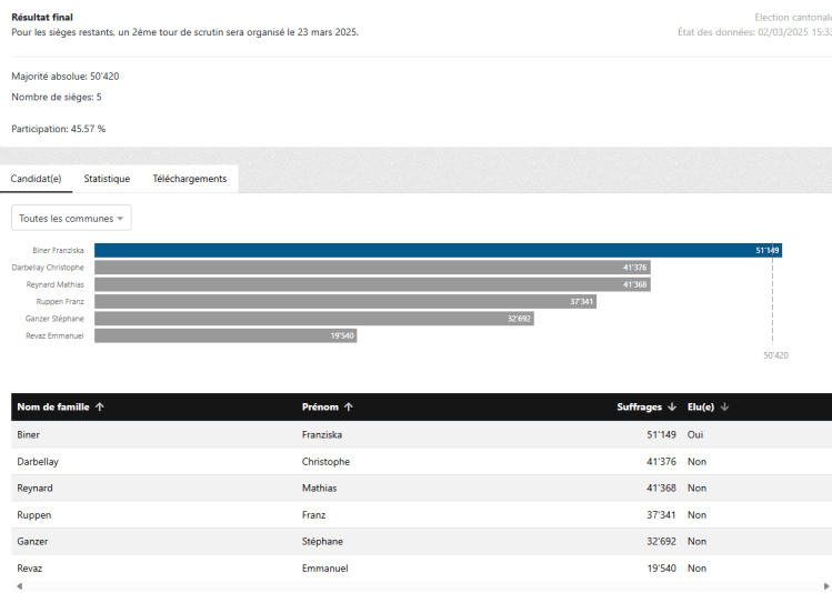 Députation, joli tir groupé, malgré ujn très bon score Valentin n’est pas élu.
